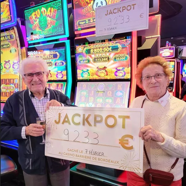Les belles histoires s'enchaînent au Casino Barrière Bordeaux ! Un peu plus d'un mois après qu'un homme ait remporté un sacré jackpot en jouant sur une machine à 0,01 centime, c'est cette fois-ci un couple qui a raflé la mise ! Mercredi, avec son âge quelque peu avancé, mais la mine radieuse, André a eu l'idée de venir tenter sa chance dans le lieu de jeu bordelais. Et l'homme a semble t-il bien fait ! En misant 0,88 centimes il a eu la chance de remporter 9233€ !