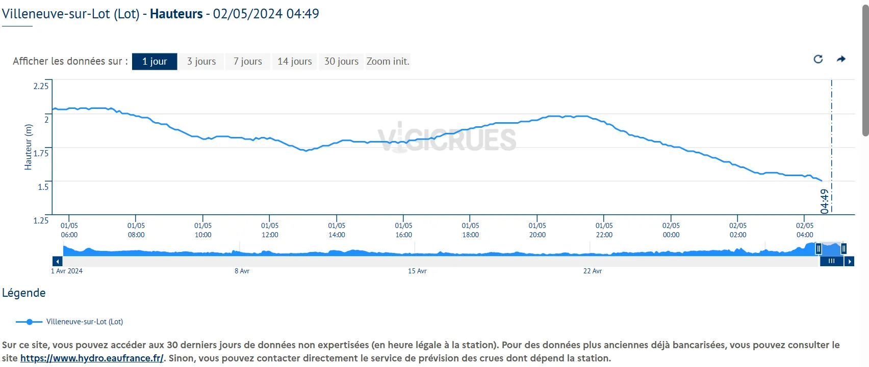 Capture d'écran vigicrues.gouv.fr à 4h50 ce jeudi 2 mai 2024